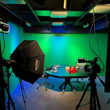 A professional TV studio is built around an SDI-based signal chain where multiple camera feeds are routed through a central video router like the Blackmagic Videohub and processed by a live production switcher such as the Blackmagic ATEM Television Studio. Audio is managed באמצעות a digital console like the Behringer X32, then synchronized and embedded into the video stream. The system includes converters for signal compatibility, dedicated recorders, multiview monitoring, and controlled lighting. All components are interconnected via SDI, XLR, and Ethernet infrastructure, ensuring low-latency, real-time production and reliable broadcast output.