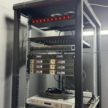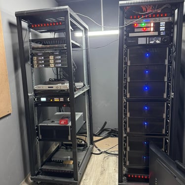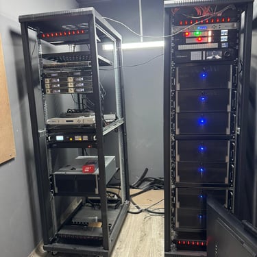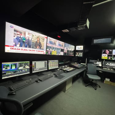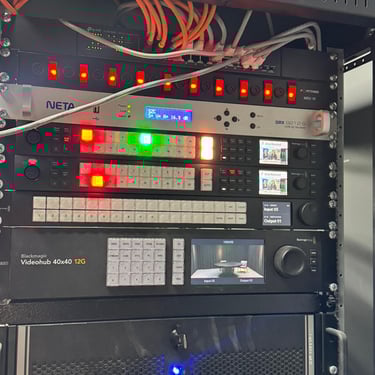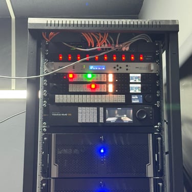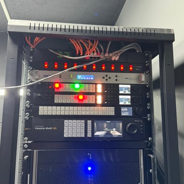 The infrastructure backbone consists of high-quality coaxial SDI cabling (BNC), balanced XLR audio cabling, and Ethernet networking for control and IP-based workflows. All hardware is mounted in standardized 19-inch rack enclosures for efficient space management and thermal control. Power continuity is maintained באמצעות UPS systems to prevent downtime during electrical failures.