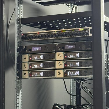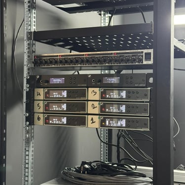 The audio subsystem is centered around a digital mixing console such as the Behringer X32. This console provides up to 32 mic/line inputs with programmable preamps, AES50 digital networking, and comprehensive DSP processing including EQ, dynamics, gating, and bus routing. Audio sources—such as lavalier microphones, shotgun microphones, and line-level feeds—are routed into the console either directly or via digital stageboxes (e.g., AES50-based expansion units). The final stereo or multichannel mix is embedded into the SDI signal via the switcher or transmitted separately for broadcast encoding.