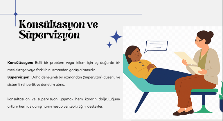 Konsültasyon ve süpervizyon: danışmanın uzman görüşü alması ve süpervizyon desteği etik kararların doğruluğunu artırır.