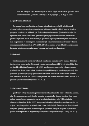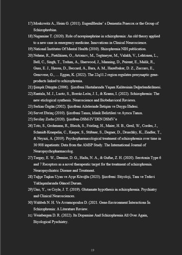 Şizofreni Tanılı Bireylerin Toplumda ve Bireyde Yarattığı Etkilerin, Tedavi Yaklaşımlarının, Sosyo-Psikolojik Etkilerinin ve Genetik Yönlerinin İncelenmesi