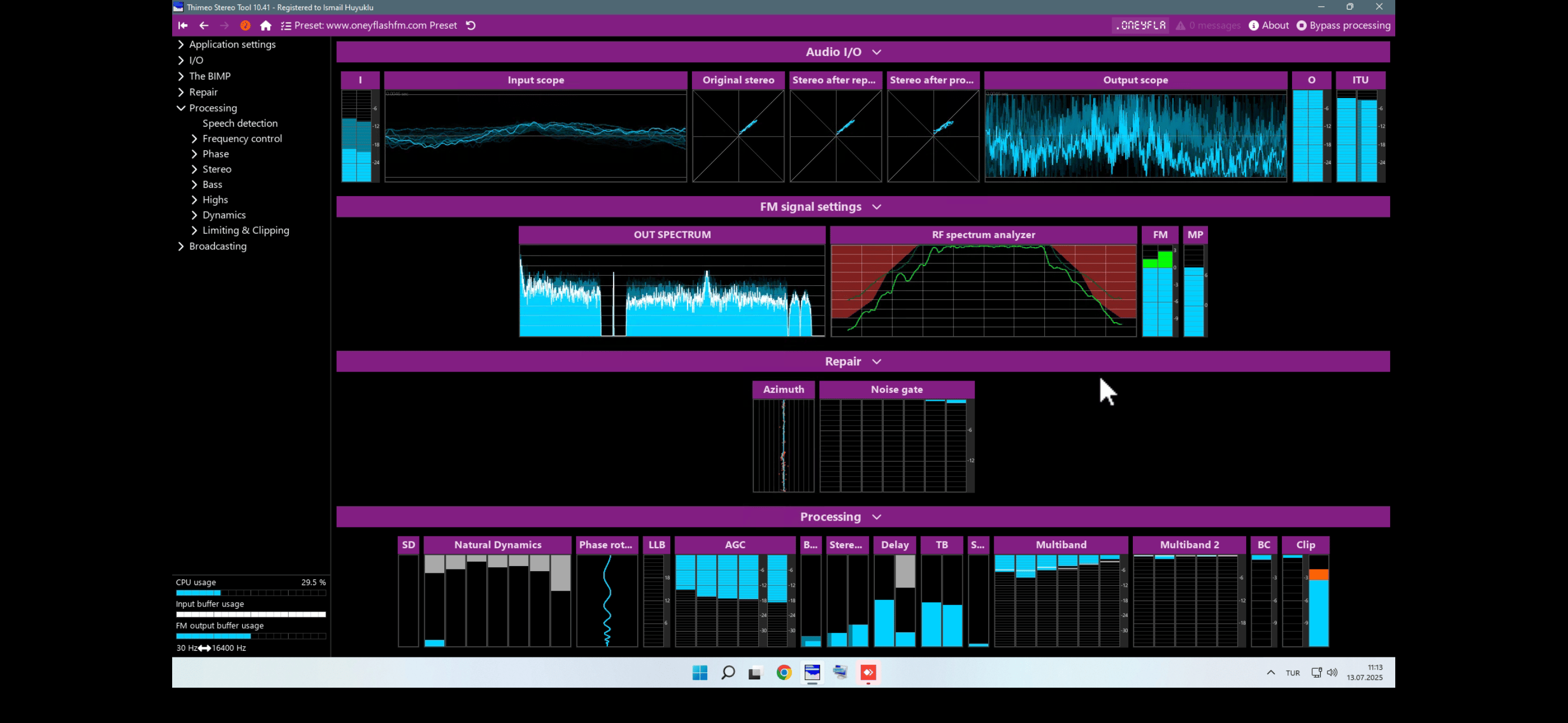 Audio Input: Stereo Tool receives the audio signal from the input source (microphone, sound card, radio transmitter, etc.).