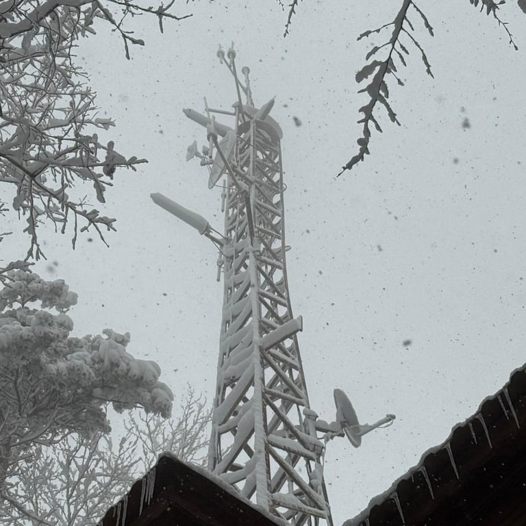 Working on towers and masts in winter conditions poses serious safety risks. Maintenance should never be performed without proper safety equipment and training.